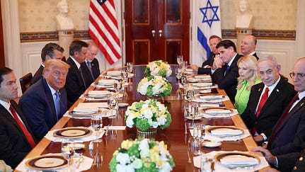 The white Americans in this photo are darker than the "middle eastern" people seated across from them.