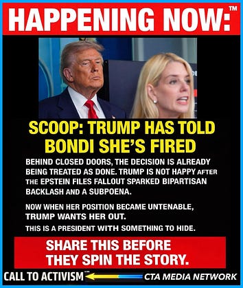 MASSIVE NEWS: Trump has notified Pam Bondi she's fired.