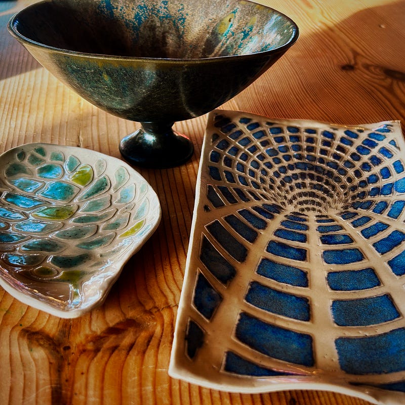 ‘Hats off,’ I had an occasion to say to myself and to my sister, when my four ceramics pieces were fetched. Last month she had the idea of giving me a ceramics workshop as a birthday gift and we went over to a local ceramicist for it. First we formed, and then we glazed. ‘No shit,’ I thought, ‘this is art,’ I then further thought, given that I have zero experience in this field. The bowl you see lots of pictures of here is my first. I didn’t use a wheel and I had close to no instruction. I just sat in a chair and got my hands in the mud. But what glory came out of it! The ‘chalice’ is almost a whole oracle in itself, what with many faces coming out of it: fish, the Madonna, Santa Muerte, and dancing fairies are all in the bowl. The other three vessels are for incense burning. I’m in love, and I’m filled with gratitude. My four pieces are very photogenic and they serve just the function they were intended for, though I have to admit that I went to the workshop utterly unprepared. It goes to show. If I weren’t an old hag already, I would consider making stuff like this in my next career, swearing to myself that I have talent. Closer to truth, what I have is an obsessive appreciation for nanban yakishime pottery, but I never thought I’d fall in love with what I got to make myself on first try. Now I wonder what’s next, as I’ve been looking at a thing called, ‘Mars raku glazing.’ I have to make a deal with the lord of time, though, as I wasn’t counting on this fun to occupy my days. Wish me luck.