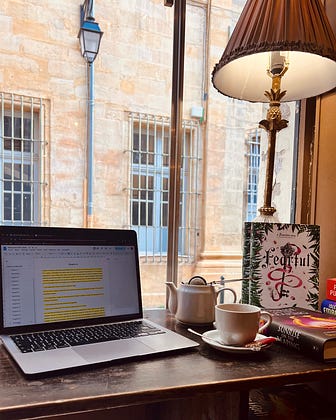 Avoir une galère avec le chirurgien, devoir poser l’après-midi et se retrouver à 16h à écrire dans une librairie - café trop mignonne ☕️