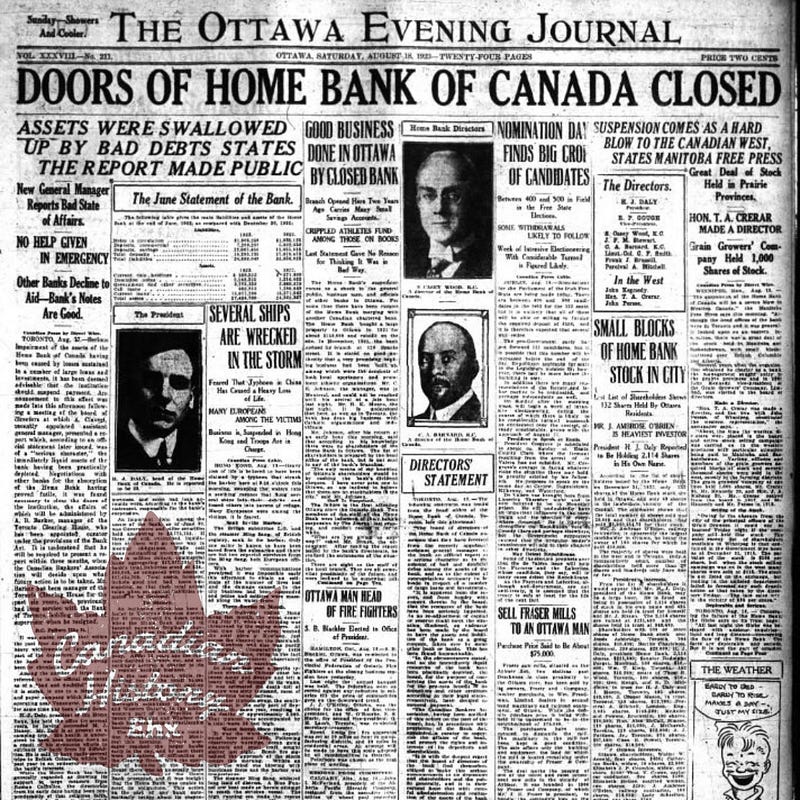 On Aug. 17, 1923, the 71-branch Home Bank of Canada failed.