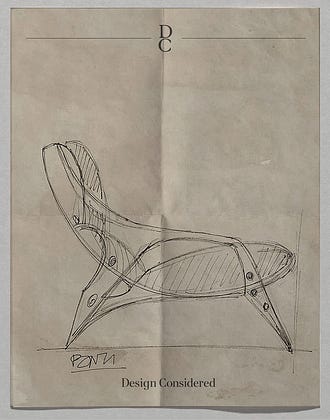 From legendary Italian designer Gio Ponti, an original drawing for Knoll – prototype lounge chair (1964).
