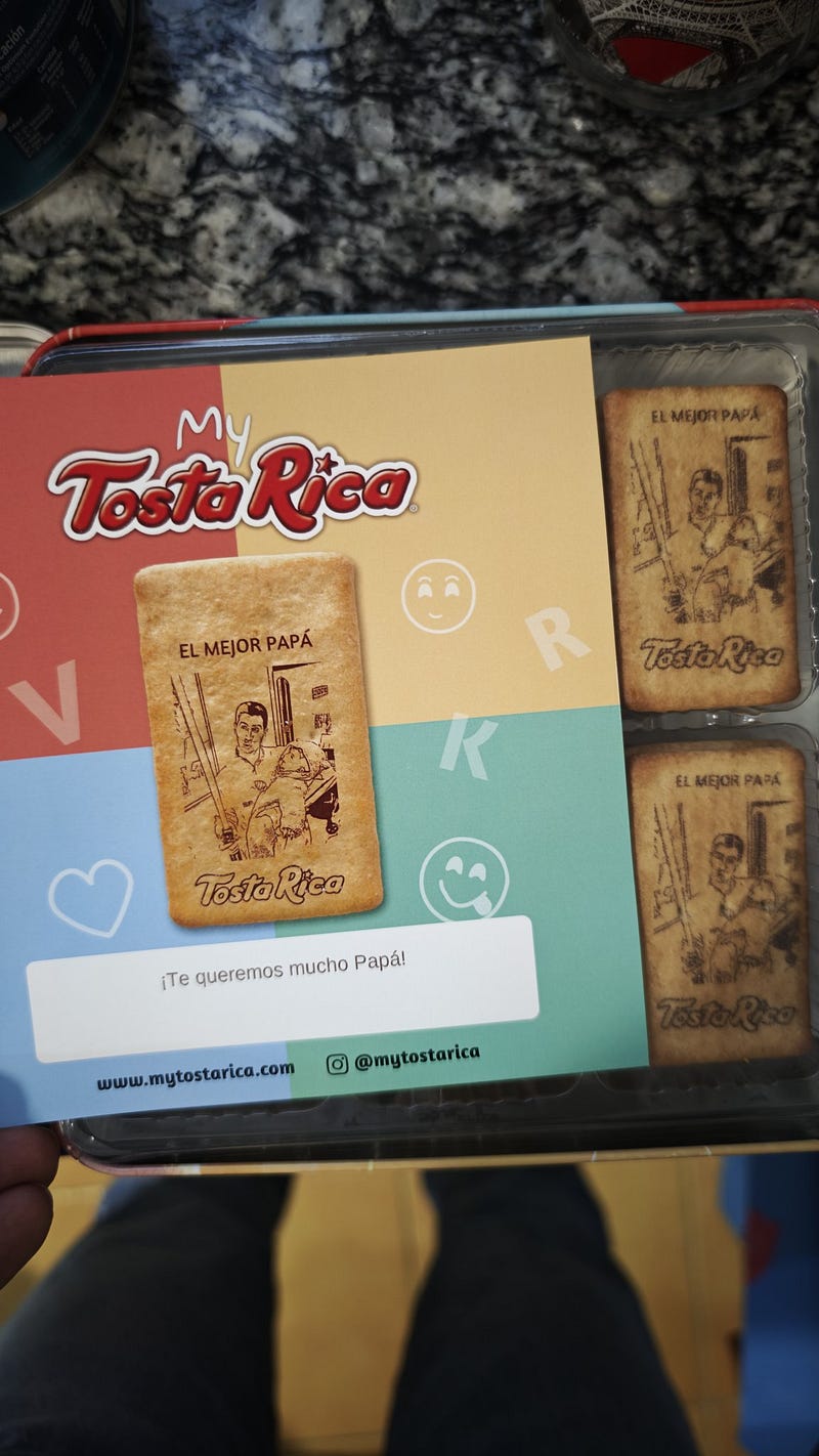 Por el día del padre mi mujer me ha hecho galletas de una foto con mi hija en brazos sonriendo y con el sable laser de Star Wars.