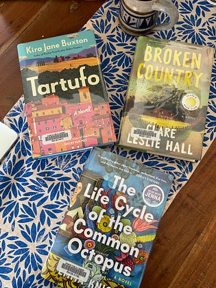 It never ever happens that I have multiple hot new books ready for me at the library, but thanks to a new release roundup post a few months back (I forget who wrote it!) I put these on hold months ago, but of course now they’re all ready at the same time and I have 3 weeks to get through them! Help: which do I start with?! I know I’ll fly through Tartufo based on Alisha Ramos report so I’m tempted to start there to get good momentum…