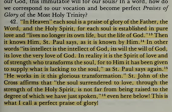 In the photo, we see an excerpt from the Tenth Day, Second Prayer of St. Elizabeth of the Trinity's August 1906 retreat notes, titled “Heaven in Faith.”