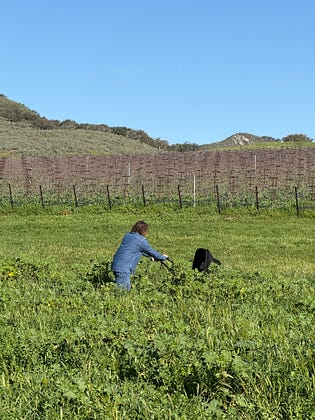 We took our 7.5-month-old son to our family’s vineyard for the first time this weekend (and put our stroller to the test). The vines are bare for winter, but the cover crops are already knee-high, right on cue. Pali’s estate vineyard sits in the Sta. Rita Hills AVA, where the soils are especially sandy. Building healthy cover crops here has taken years of steady work. They protect against erosion, return nitrogen to the soil, support pollinators, and increase biodiversity across the vineyard—making the vines more resilient to pests and disease.