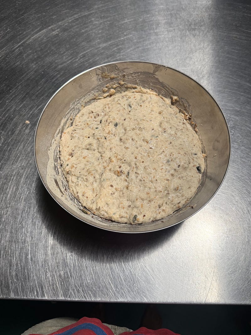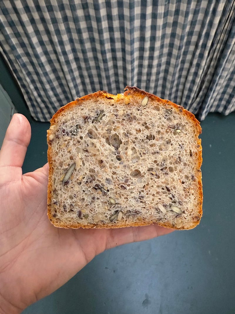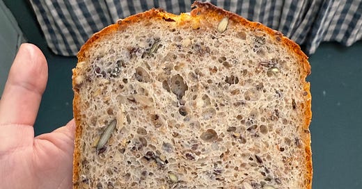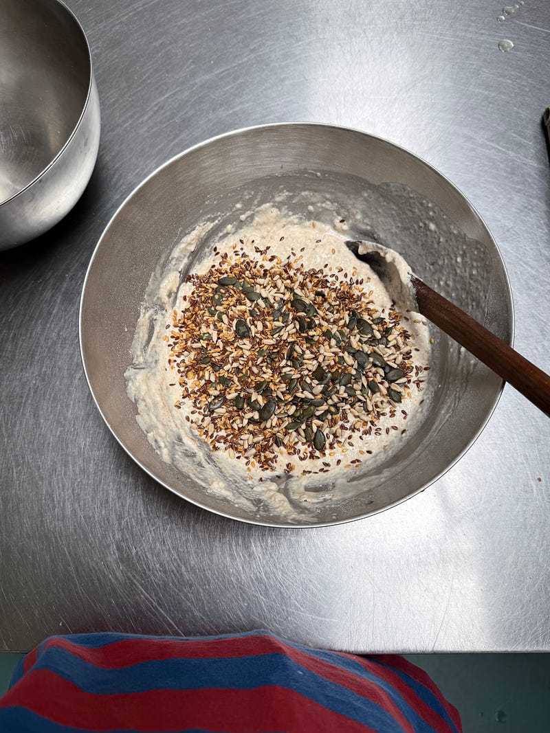 At the moment I’m having difficulty maintaining a sourdough starter, so I’ve been enjoying making my seeded loaf with yeast instead.