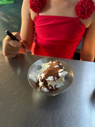 Growing up we always had “ice magic” in our pantry. It’s easy to make your own with whole foods and it tastes much better. Put a few squares (I used eight Whittaker’s squares) of your favourite chocolate into a small bowl with a teaspoon of tasteless coconut oil. Melt it over a small pot of simmering water using a bain-marie method. Once it has melted, pour it into a small bowl and then over your ice cream and wait for it to harden then enjoy!