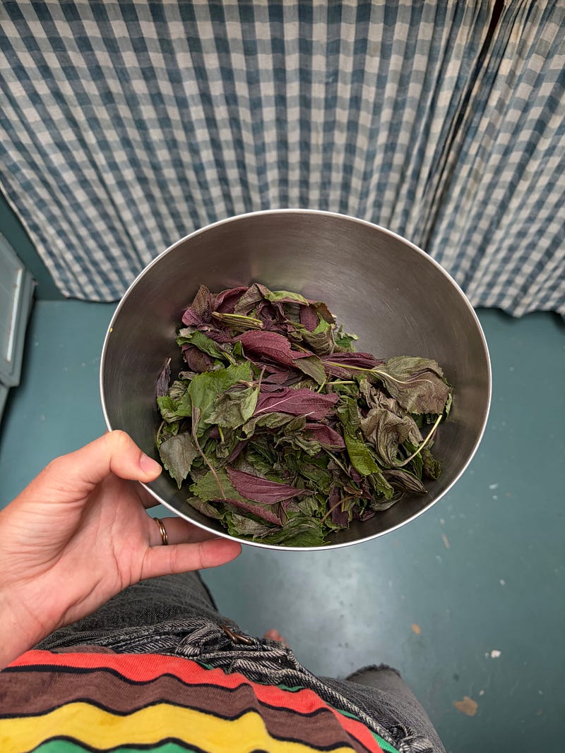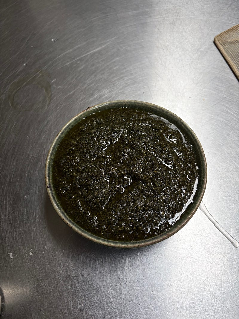 On a very hot day, I was gifted some Shiso when I was eating lunch at my favourite Japanese restaurant. The owner, Yuki, told me to make pesto with it and it is delicious. It kind of tastes like basil, but softer with hints of mint. I used the recipe from my second cookbook, which I’ll have more of in stock soon 💙