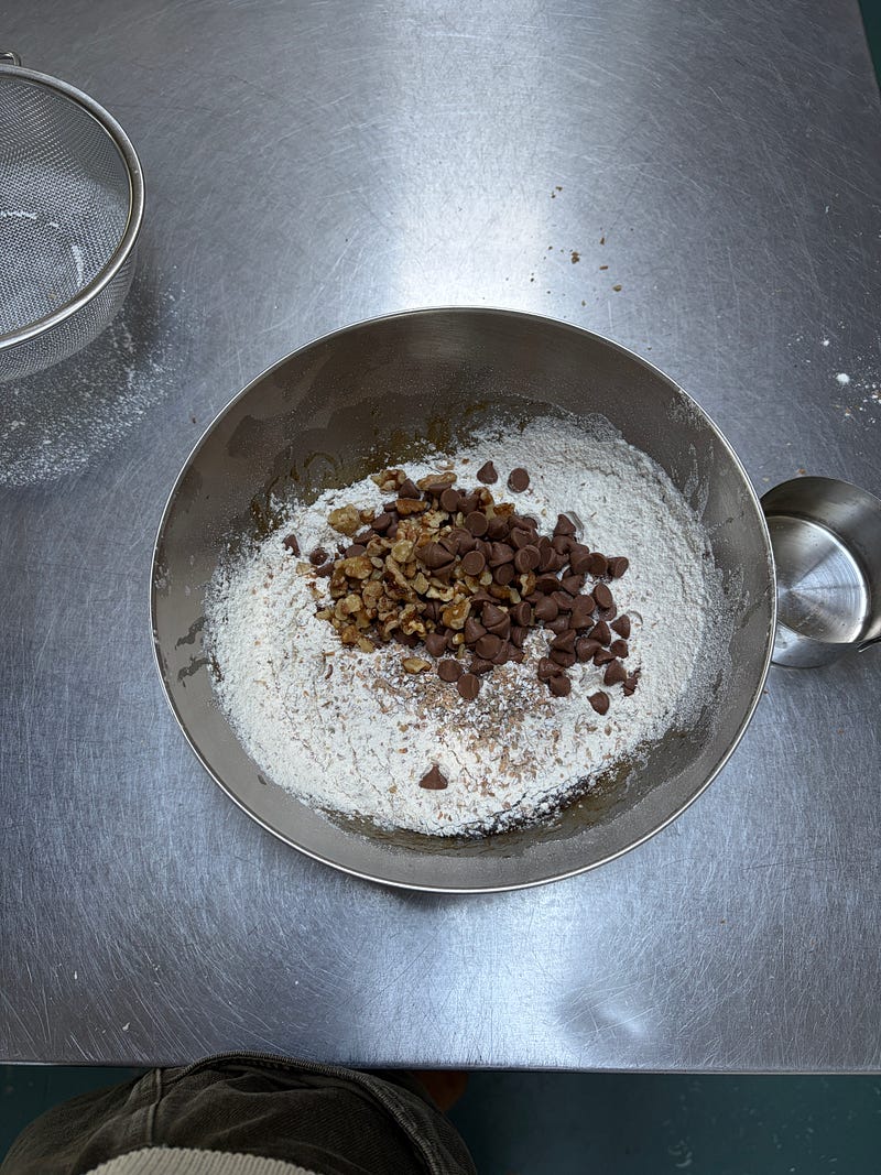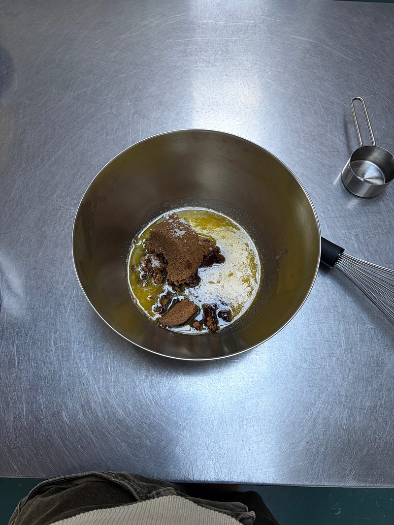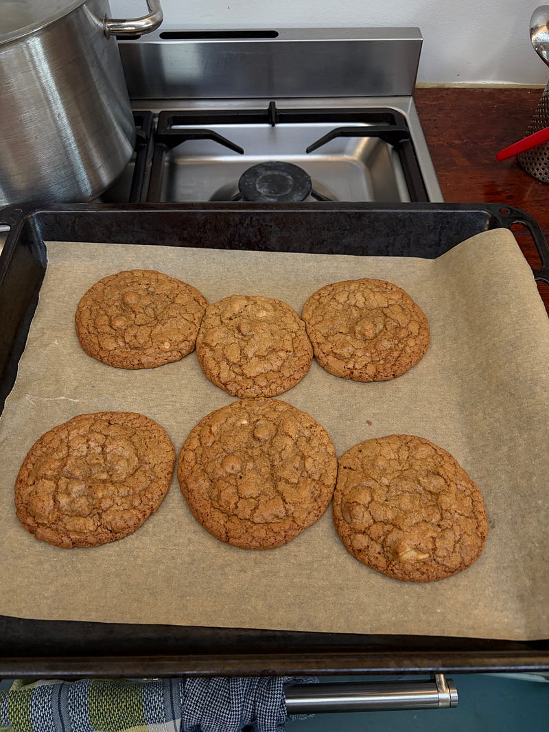 It took me 5 minutes to prep these cookies when I was supposed to be prepping dinner. You don’t need to beat the butter with sugar, just melt it and stir it altogether. They are chewy which are my favourite type of cookie and easy to substitute other things you like in a cookie. This time I used a little rye flour and some walnuts too. Here’s the recipe 💙