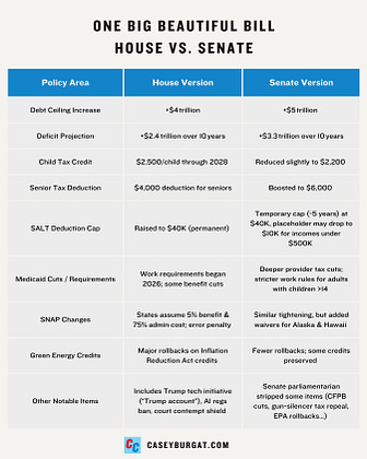 The main differences between the House and Senate versions of the One Big Beautiful Bill.