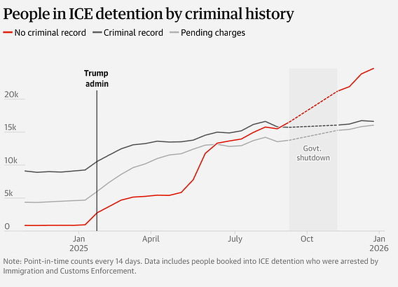 One of the biggest differences in this iteration of ICE—and there have been biggies—is the proportion of those arrested with no criminal record whatsoever.