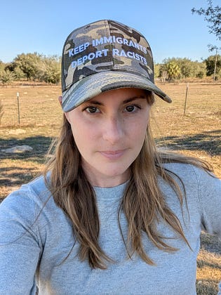 You don't know who you're standing next to solely based on appearance. So after this particular incident, I got this hat specifically to start debunking the stereotypes that make the right wingers in our area feel so incredibly smug and secure. I want them to start questioning EVERYTHING, starting with the woman in the boots and camo baseball cap.
