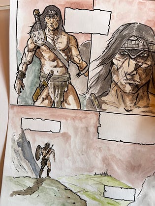 Tarus of Hessia is a character from my own solo campaigns - this short comic will show his journey to and arrival in the city of Kar’Eld to enter the famous grand tournament in the fighting pits.