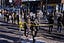 The video then shifts to a different part of the street and then comes back to the two individuals unlinking from each other. The video shifts focus again and then shows three officers surrounding the man.