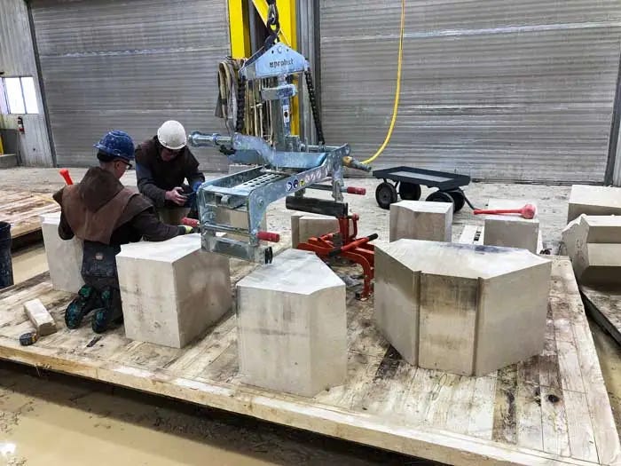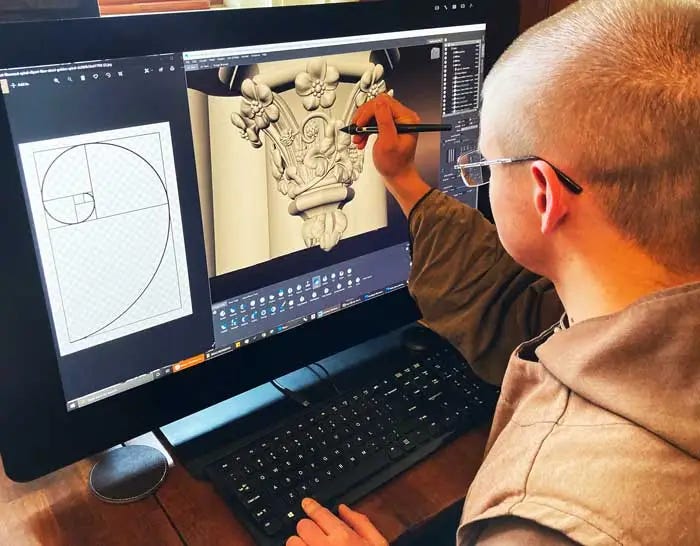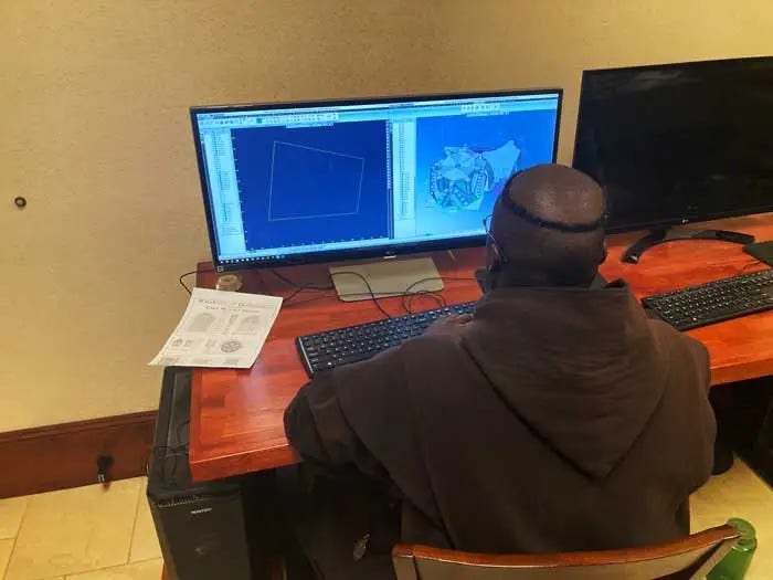 Pictured are the Carmelite monks (some properly tonsured) of Wyoming who are using CAD to get machines to carve stone for their gothic cathedral
