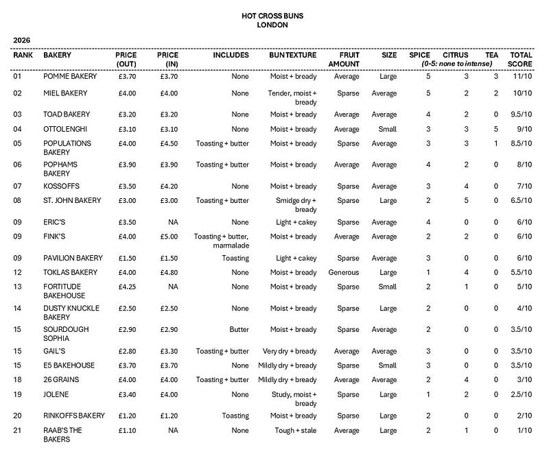 nothing is more satisfying than a good Excel table—here’s my ranked table of the 21 hot cross buns I tried from bakeries all around London!