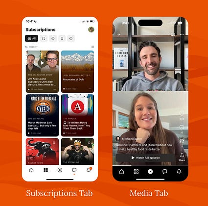 Discovery is also key, and can be a particular challenge for long-form media like podcasts and interviews. We're testing an update to the media tab that gives you a quick way to browse video content. It should feel like a familiar format, but we've with some key additions that make it Substacky: