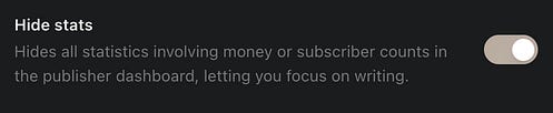 Very happy Substack has this option now. I’ve had a custom add on that hides stats for several years, but it keeps breaking whenever Substack updates its design.