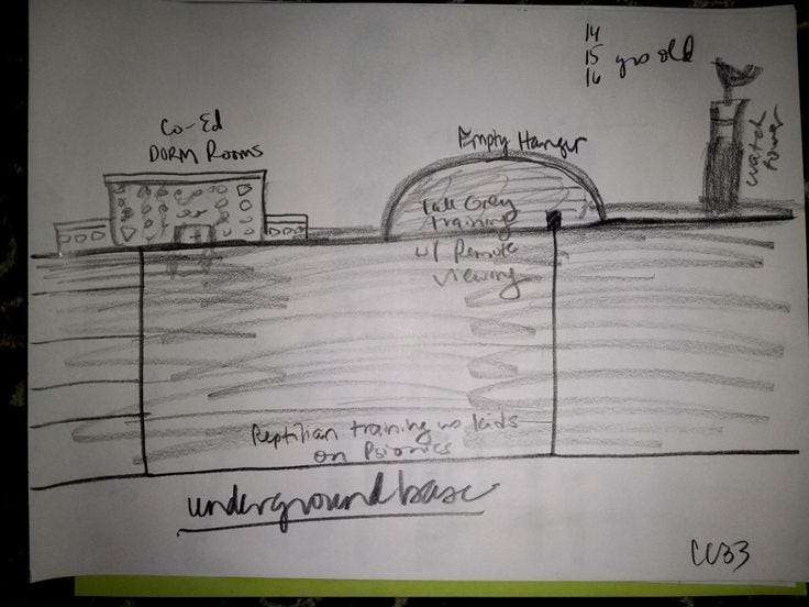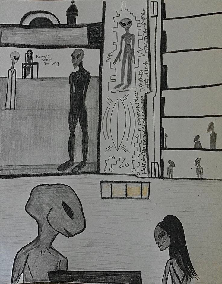 Ages 14-16: Taken to a military base trained by a Tall Grey & Reptilian in remote viewing & psionic warfare.