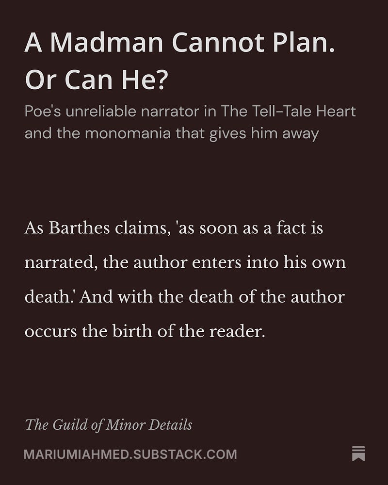New post dropping today! Been sitting with this one for a while. If you've ever read The Tell-Tale Heart and felt like something was deeply wrong with the narrator — this one's for you.