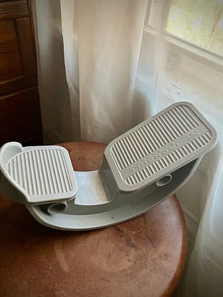 A foot / ankle rocker is a wonderful tool for stretching the calves and shins, and improving range of motion / mobility in the ankle. Great for before and after walks, jogs, hikes, or any other activity / sport, or just a great way to start the day. Takes only a minute per foot, and offers both immediate and long lasting benefits. I use one myself, and use them with many of my clients.