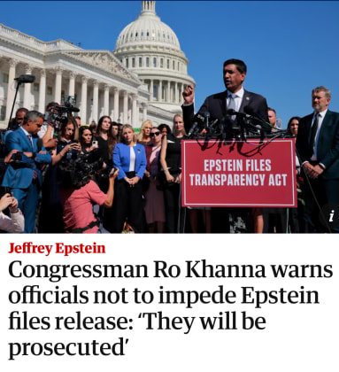 Graeme Bird: White males do not have the balls of Black and Brown men! Khanna introduced the Epstein bill back in July and it passed the House and Senate unanimously on the same day!