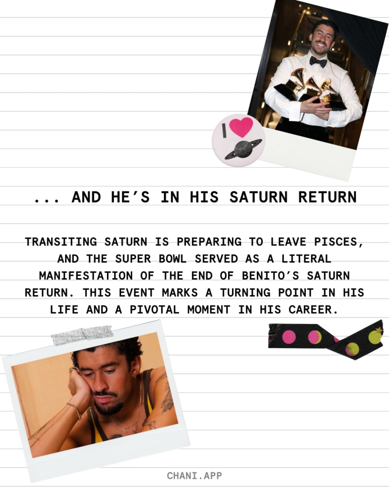The real winner of Super Bowl LX? Benito Antonio Martínez Ocasio. Swipe for a peek at Bad Bunny’s birth chart and how it rhymes with this historic moment.