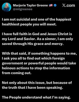 When a sitting member of Congress has to post this before pushing for the Epstein files release… you know she’s directly over the target.