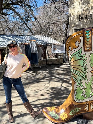 I’ve hit one hundred subscribers! I’m out here in Wimberley, Texas next to a boot taller than me, which feels like an accurate metaphor for what I’ve taken on with my Substack. The “C-PTSD Project” is a year-long journey where each month I try a different, recommended method for helping those with Complex PTSD lessen the symptoms. I check in weekly (sort of) and share what’s happening so you can see if any of it might be useful for you.