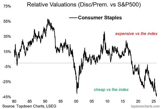 Consumer Staples extreme cheap vs the index.