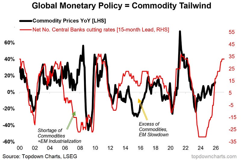 Historically this kind of shift to easing has lit a fire under commodities.