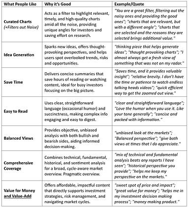 Here's a summary of what Paid Subscribers say they like about the Weekly ChartStorm 👇