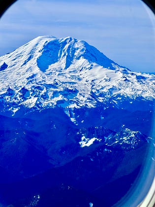 This snowbird is home! Mt. Rainier welcomed me back, as seen through my airplane window.