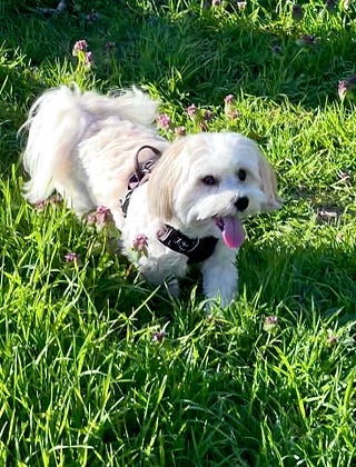 Spring green grass and wildflowers… off-leash dog joy… all in soft focus. This is my idea of the best time.