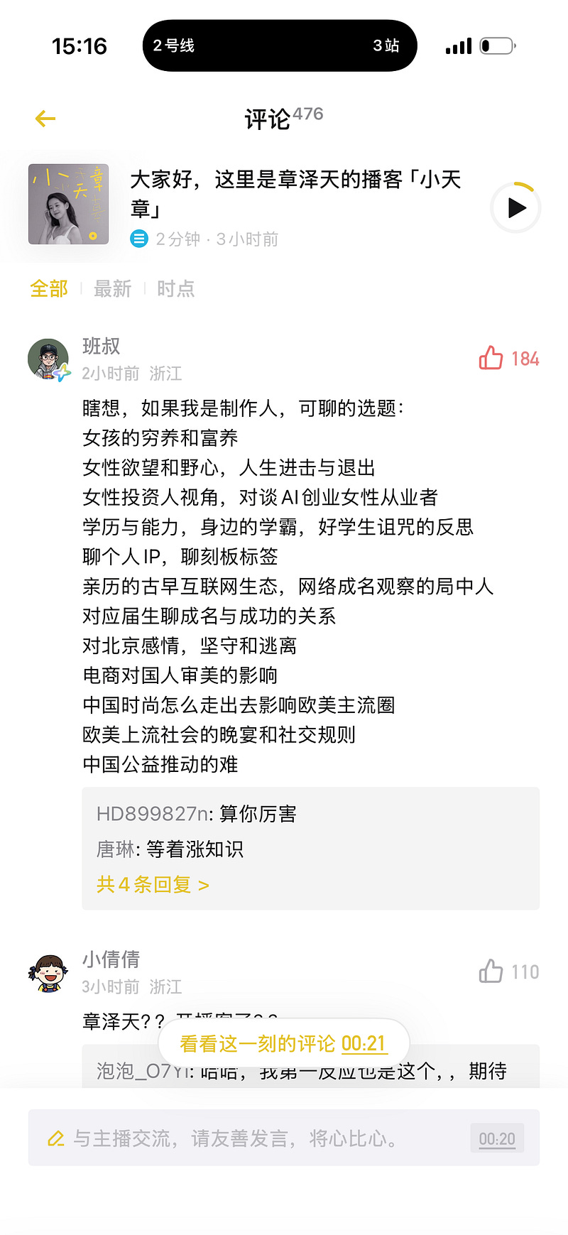 The top comment shows a list of potential topics of public interest including upbringing of financial parenting of girls, women’s desire and ambition, etc