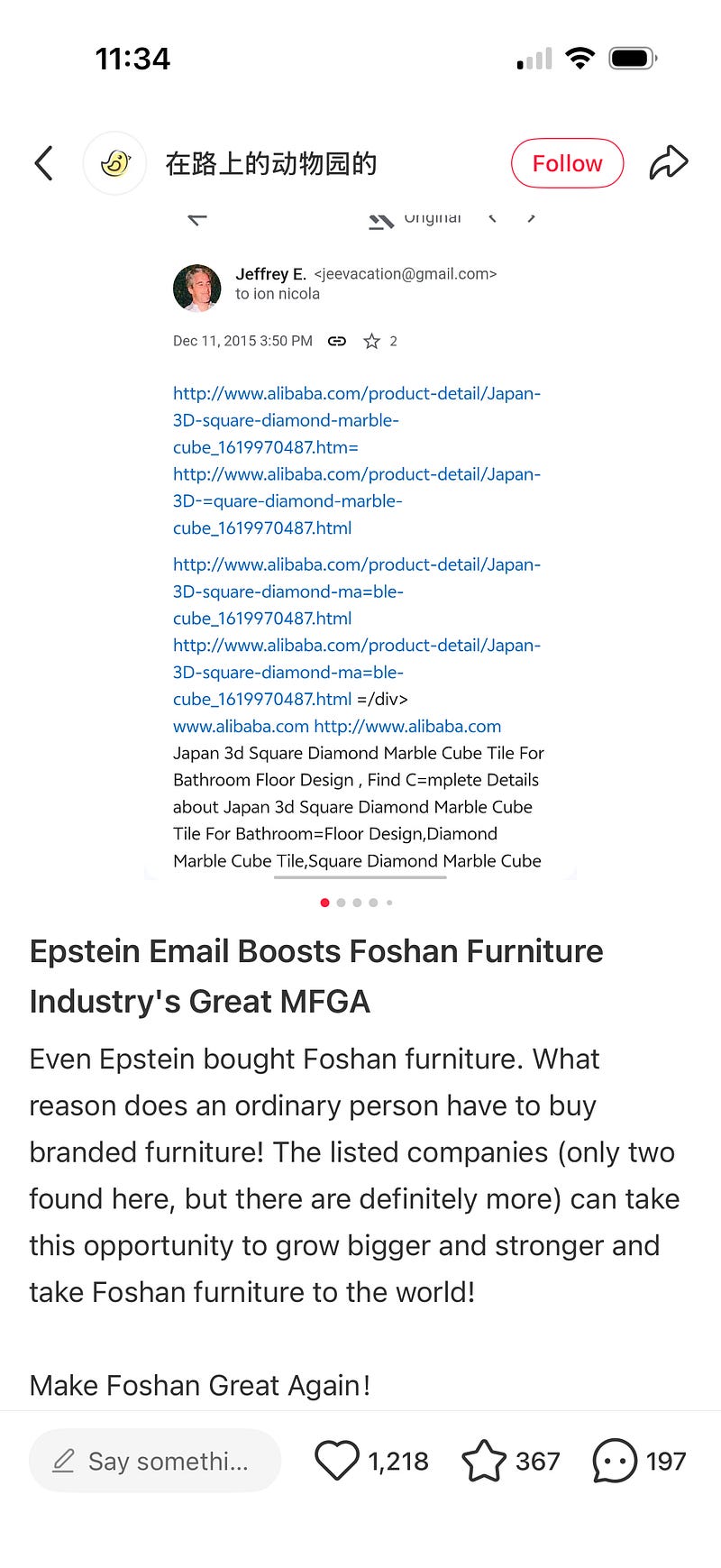 Some Chinese internet users are not shocked by Epstein’s wrongdoing, but impressed that he supported made-in-China goods