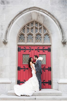 Having the one of the groom’s hands cradling his bride and the other in his pocket shows love, care, support and a cool confidence.