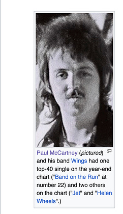 This Wikipedia page has the world’s worst picture of Paul McCartney