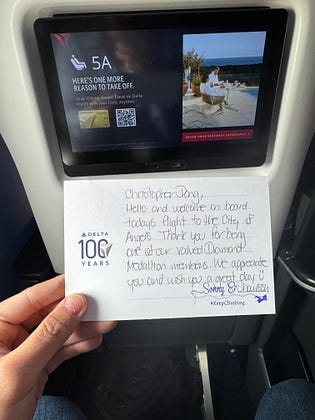 This Delta crew wrote a note to EVERY FIRST CLASS passenger.