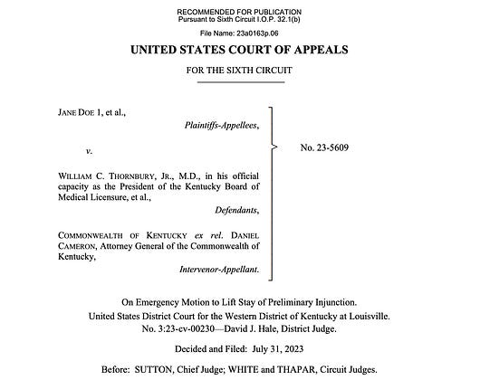 BREAKING: The U.S. Court of Appeals for the Sixth Circuit, in another 2-1 ruling, keeps Kentucky's ban on gender-affirming medical care for minors in effect during appeal.