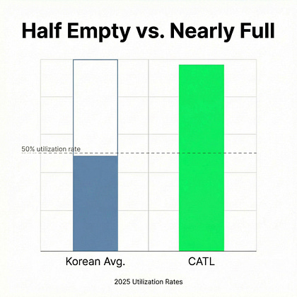 In contrast, CATL ran at 96.9% utilization last year, up from 76% in 2024.