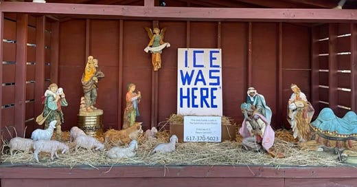 A suburban Boston parish is under fire from Fox News and MAGA commentators after unveiling an Advent Nativity scene without Jesus — and with a stark message: “ICE was here.”