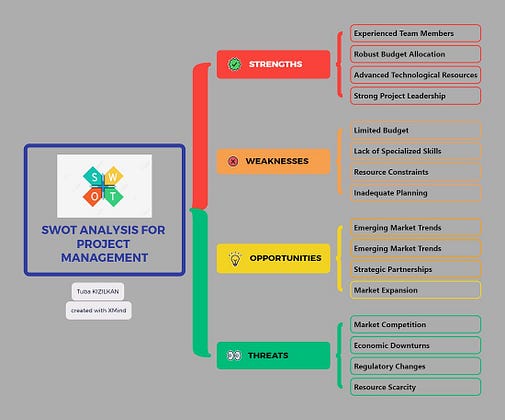 Tuba doesn't mention this in her Substack post, but building a SWOT analysis in a mind map also gives you several other advantages: