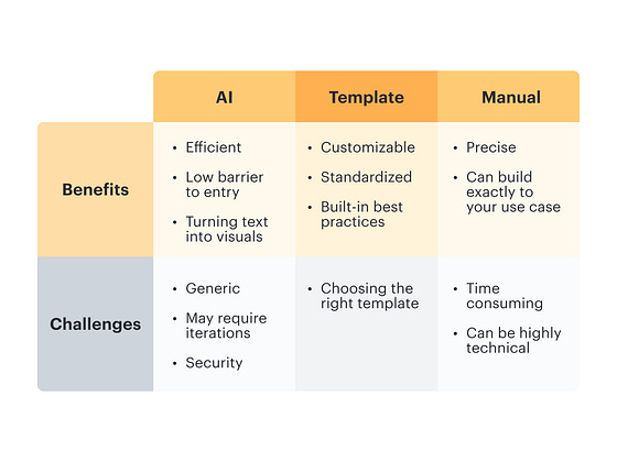 However, just because a diagram can be created quickly doesn’t mean it is always the best solution. So, when is generating a diagram with AI the right choice? When should you customize a template or when is it better to create something from scratch?