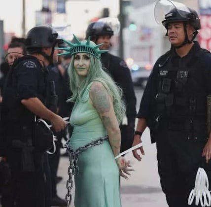 A hundred years from now, this image of Lady Liberty zip tied by the very men who had pledged an oath to protect her will be the defining metaphor for the American landscape of this era. A word to describe this uncertain and, frankly, terrifying time is ‘weary.’”