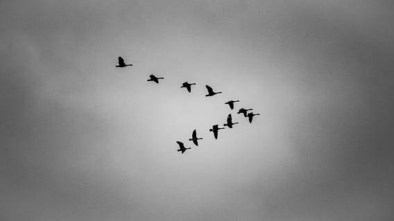 Returning to my office after an early class, I stepped into a wind that scattered the snow and my hair across my face, blurring my sight. Overhead, a lone Canada goose called out, its voice forlorn, searching. Geese mate for life, forming bonds that endure season after season. To hear one alone feels almost unbearable.