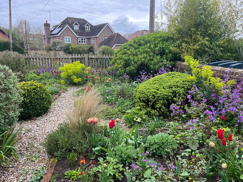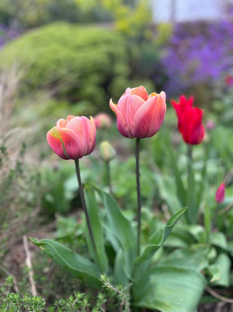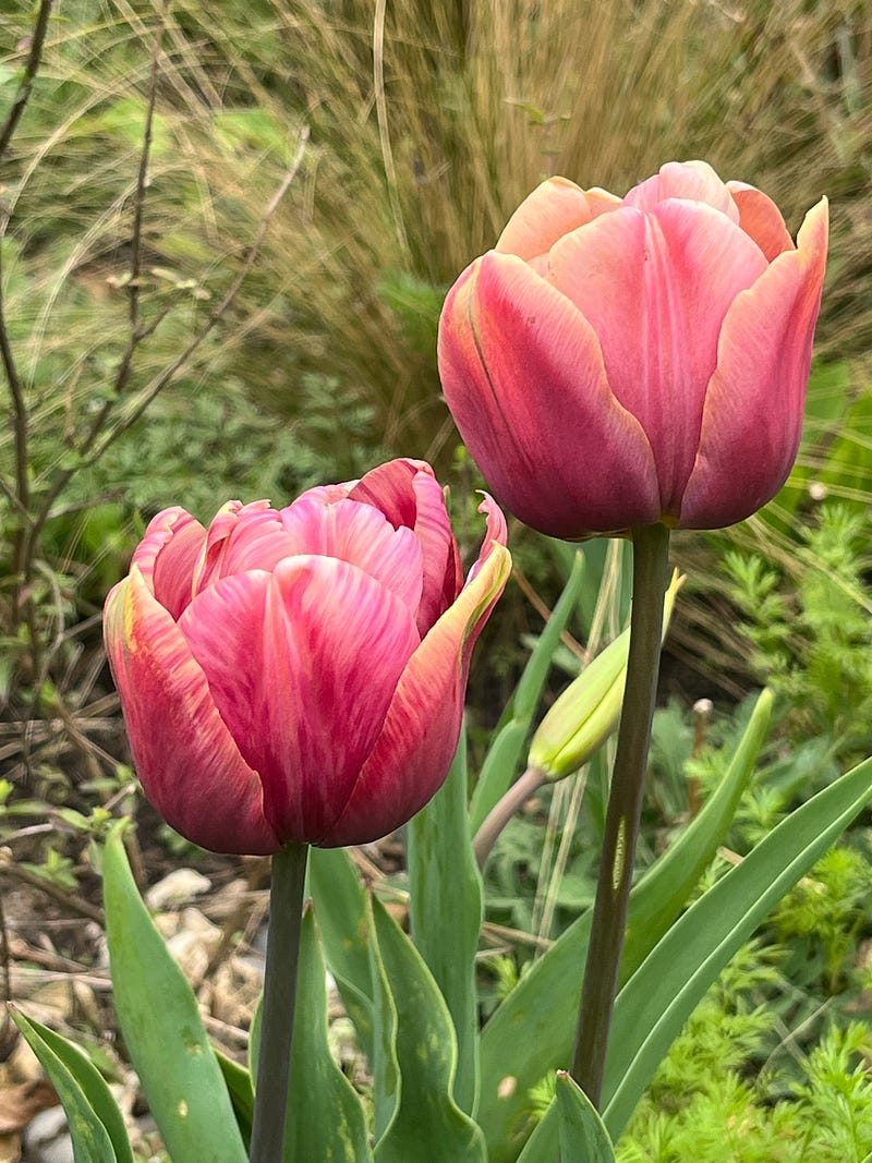 The Belle Epoque tulips are very pink this year with tinges of green which I haven’t seen before - I planted some new stock in the autumn. It’s interesting how they seem to change from year to year, they were much more apricot-hued last year. Some look like they are slightly virused too, with broken colours. Even more interesting!