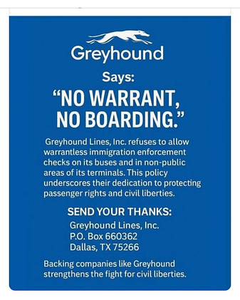 Greyhound buses will not allow Border Patrol agents to board and conduct immigration checks without a warrant. This policy change was implemented in response to a leaked government memo indicating that agents needed consent to board and a lack of clear guidance on warrant requirements. Greyhound now explicitly states that it does not consent to warrantless searches on its buses or in non-public areas of its stations.