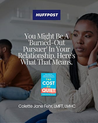Honored to have been a contributing therapist in today’s Huffpost article on the burned-out pursuer dynamic! (and this was me in my first marriage).